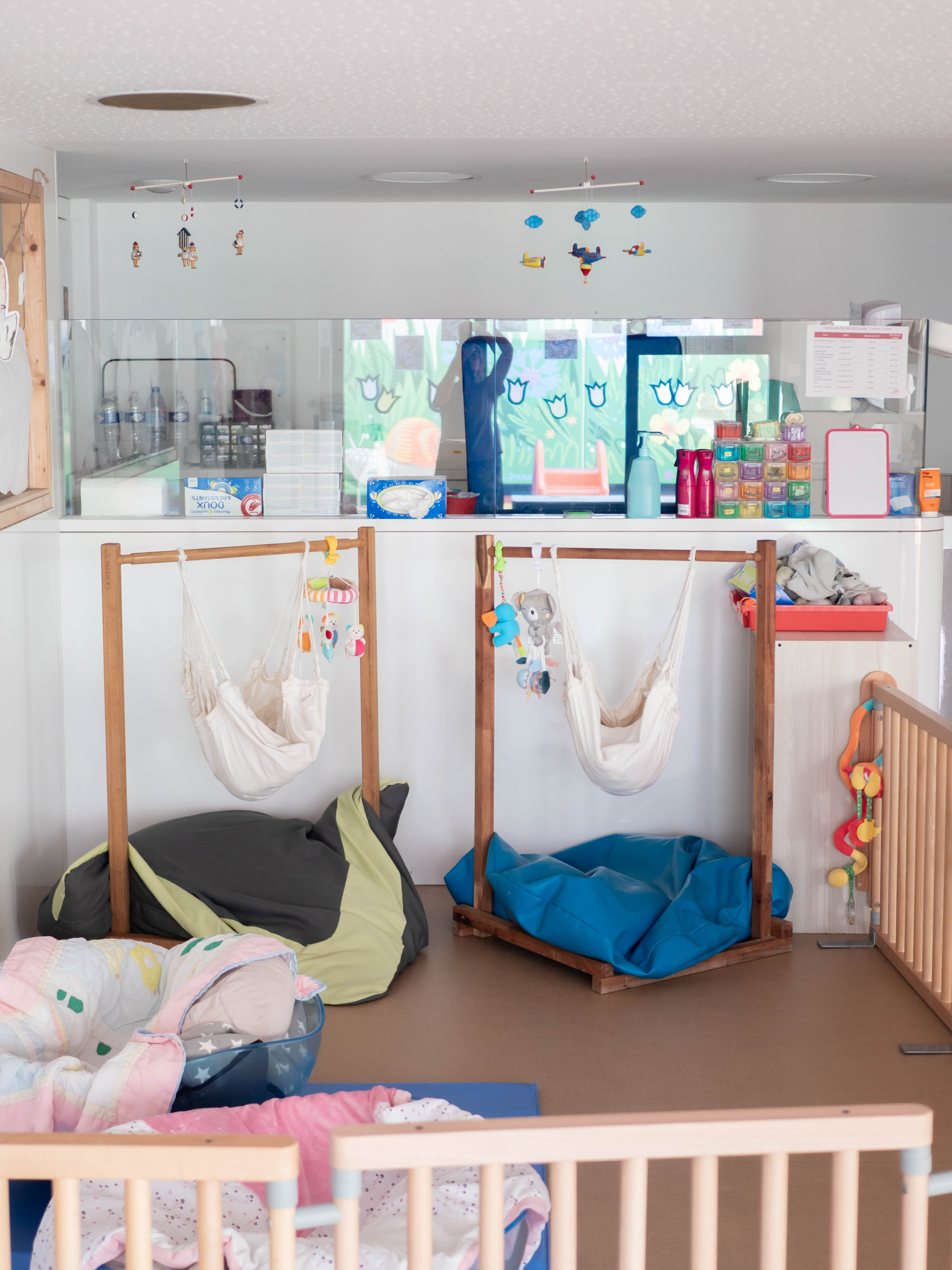 Chaque section est aménagée spécifiquement selon l’âge des enfants, avec une ouverture sur l’extérieur.