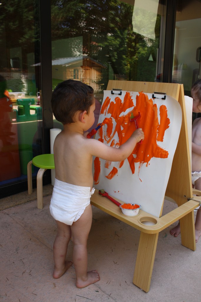 Les émotions sont au cœur de la vie d’une crèche. Matériau et outils de travail à la fois, elles s’y partagent et s’y apprivoisent. Les enfants apprennent à les reconnaitre et, dans cet apprentissage, la créativité joue un rôle essentiel. Nous avons la chance de compter, au sein de nos équipes, des personnalités créatives qui avec du papier, un bout de tissu, quelques gommettes et des couleurs parent les murs des sections de jolies images empruntées à l’univers des contes et de l’enfance, ou jouent d’un instrument de musique invitant ainsi les enfants à découvrir une activité et développer leur imaginaire et le goût de l’ailleurs. Tous les enfants de la crèche, bébés comme plus grands, assistent à des séances d’éveil musical. Une thématique est choisie pour l’année qui servira de fil rouge aux activités proposées aux plus grands, qui trouveront également dans les temps forts du calendrier, Noël, Pâques, le printemps, la Chandeleur, etc… une source d’inspiration.
