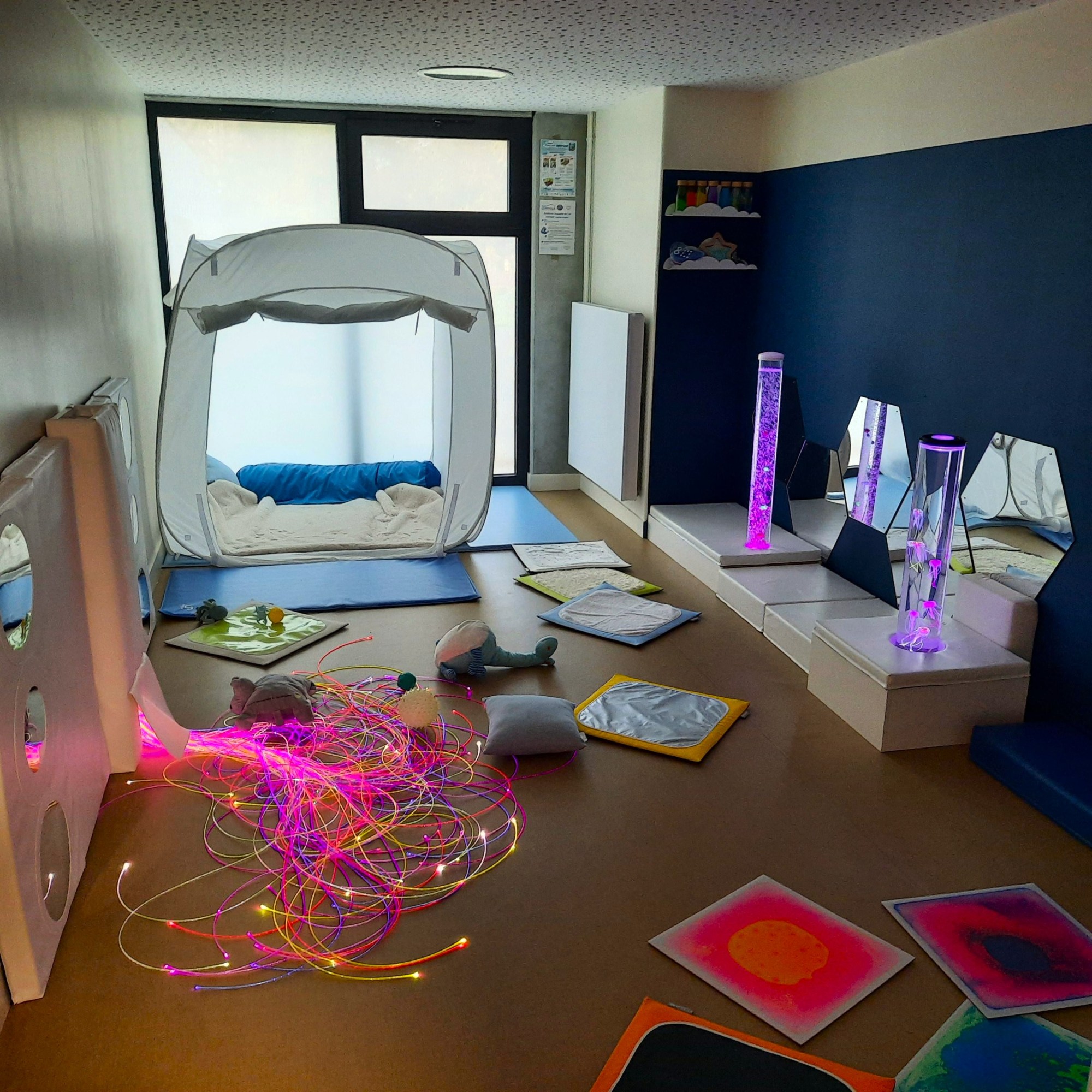 Nous avons aménagé un espace Snoezelen pour offrir aux enfants un moment de détente, d’exploration sensorielle et de bien-être.